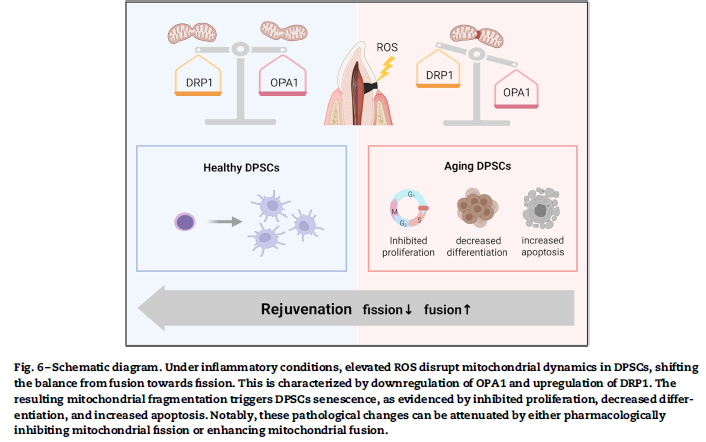 Source : Tang W, Wang W, Wan X, Shen C, Qiu X, Zhao Y, Li W, Liu C, Ren S, Miao L. The Role of Abnormal Mitochondrial Fusion and Fission in the Inflammatory Senescence of Dental Pulp Stem Cells. Int Dent J. 2025 Sep 15;75(6):103877. doi: 10.1016/j.identj.2025.103877. Epub ahead of print. PMID: 40957155; PMCID: PMC12466268.